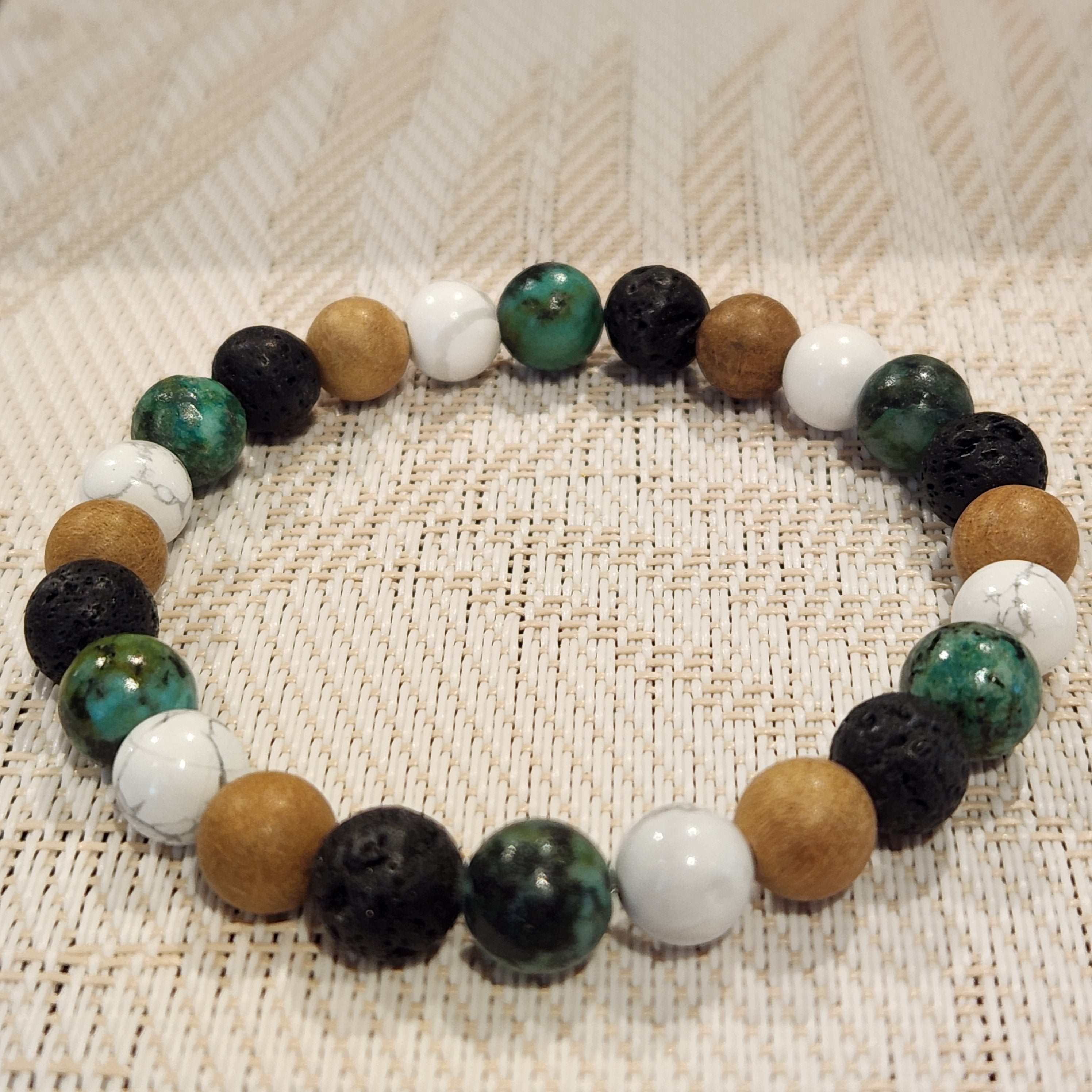Natural African Turquoise(Jasper), with Natural Howlite & Lava Rock and Sandalwood Beads